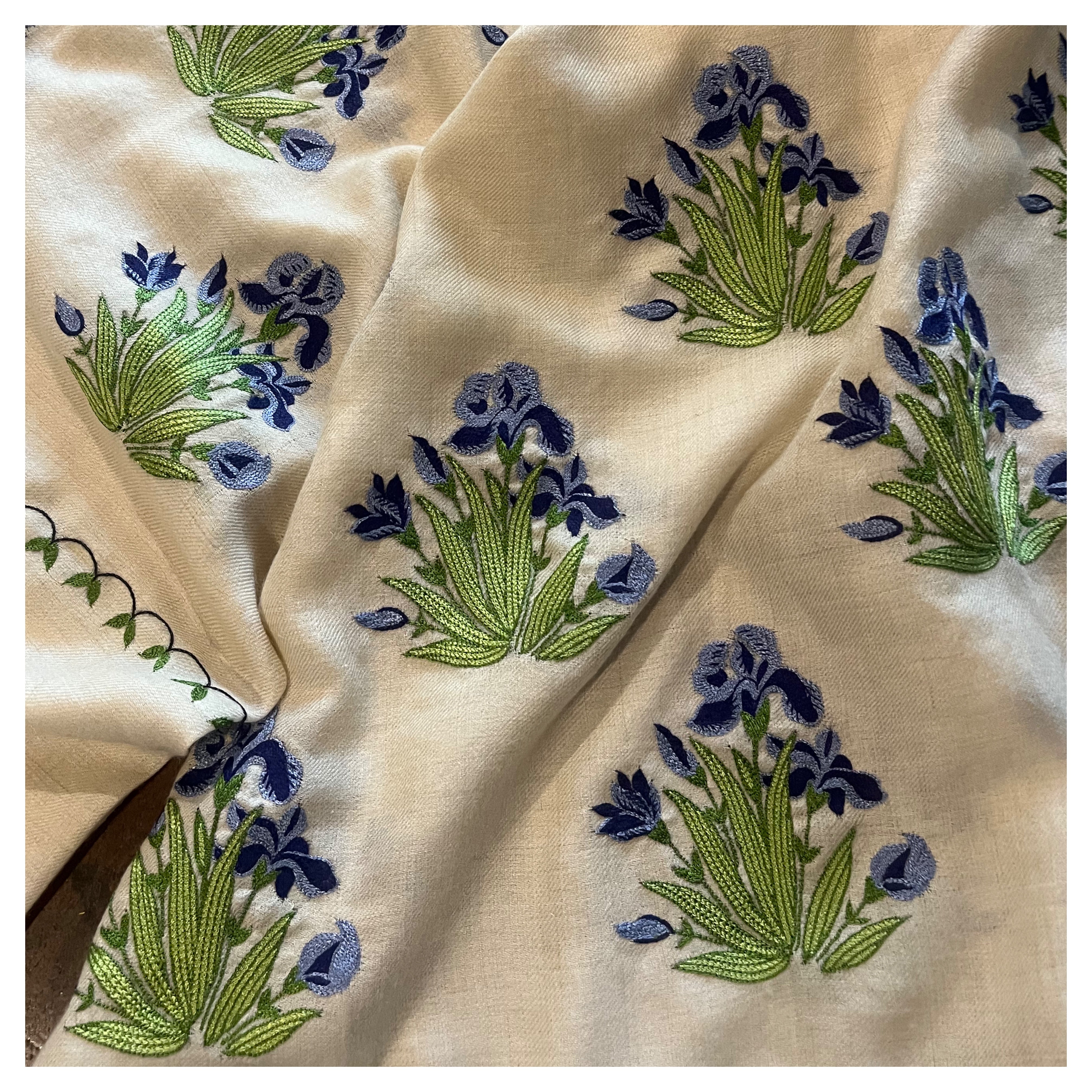 A garden in Kashmir in all its glory. Hand-embroidered on pure cashmere it takes you into the dream that is India