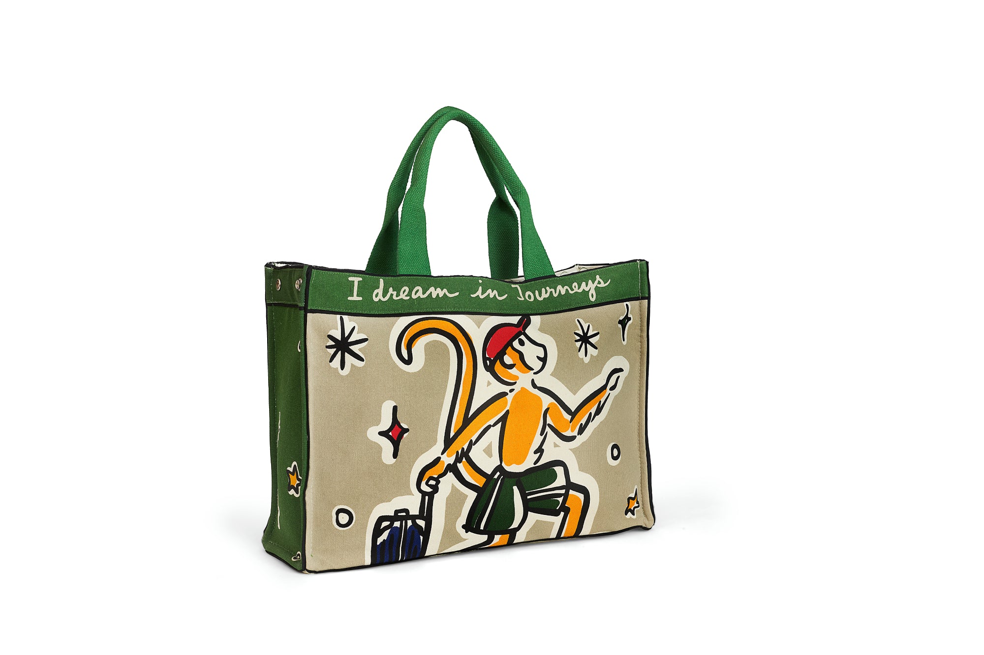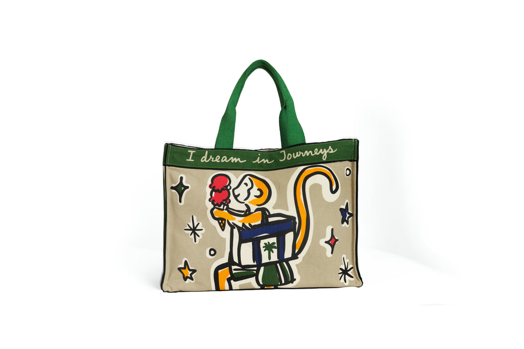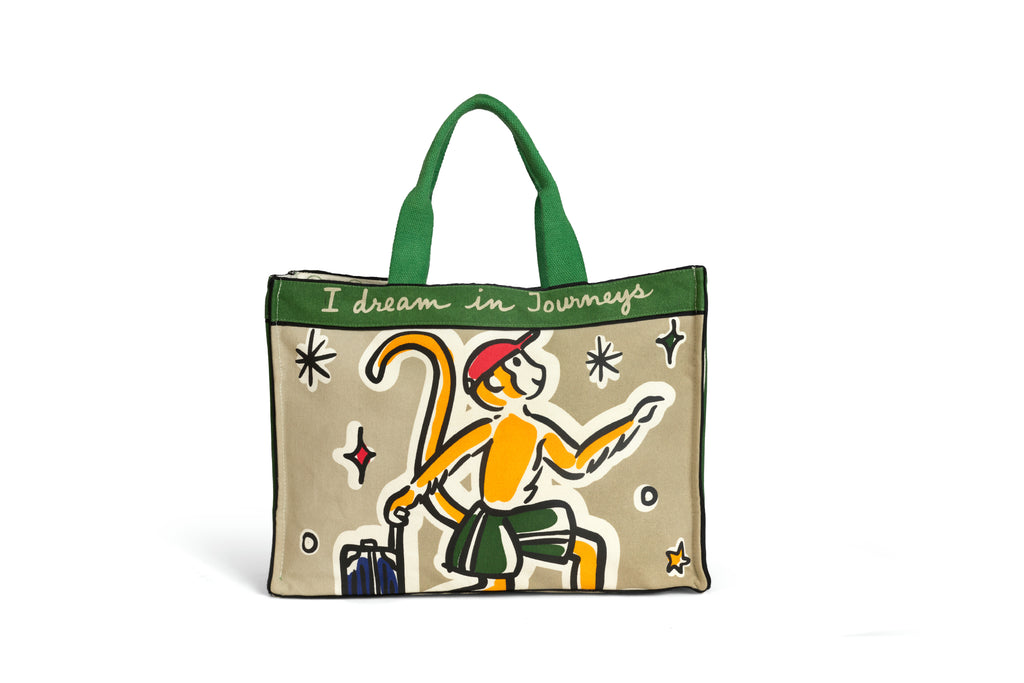 A whimsical companion for the curious at heart. The Traveller brings our little monkey’s adventures to life, playfully traveling across the canvas in vibrant illustrations. It’s a tote that turns everyday journeys into joyful explorations. A touch of whimsy, a dash of wonder, wherever you go.
